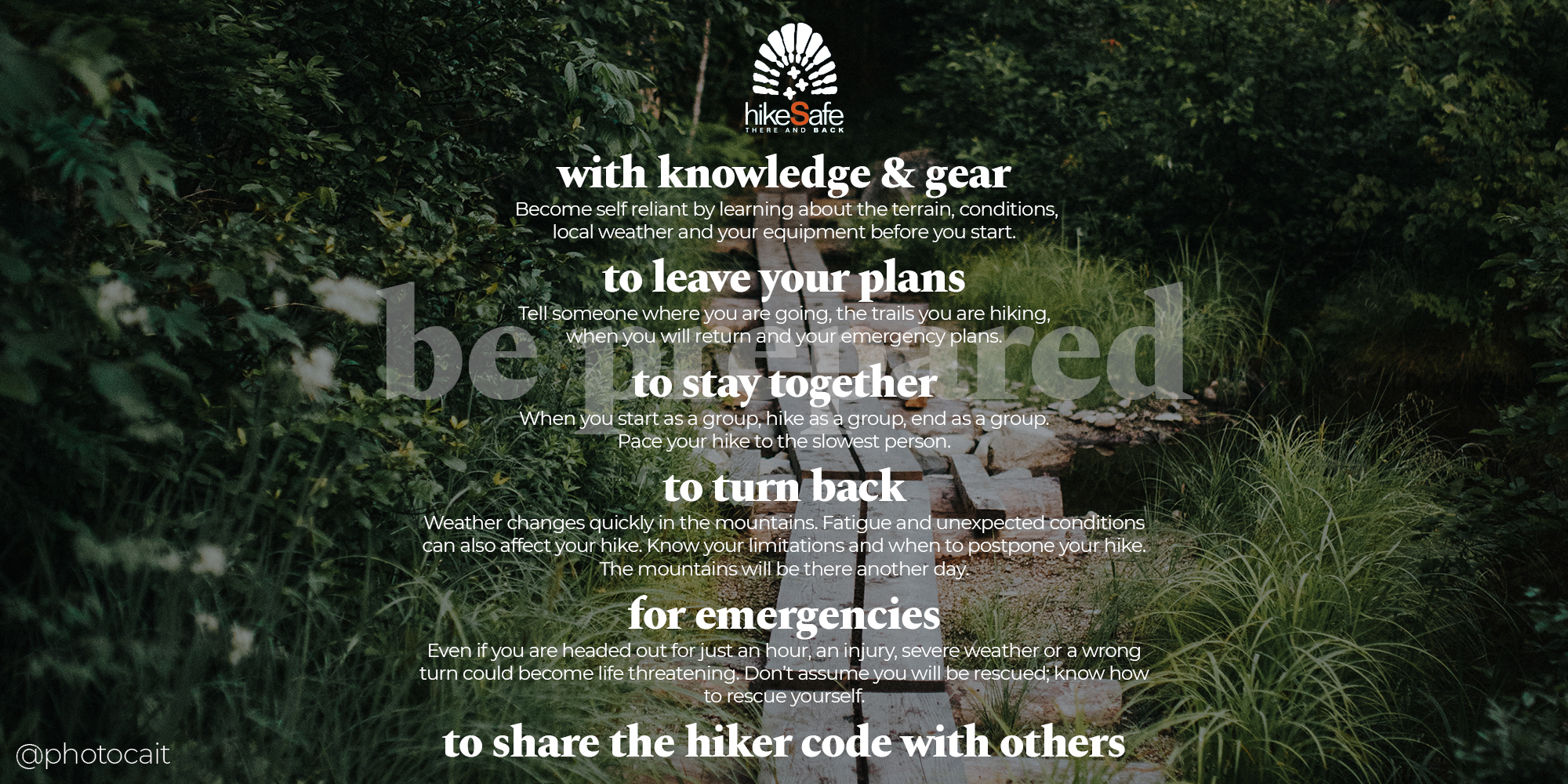 Weather changes quickly in the mountains. Fatigue and unexpected conditions can also affect your hike. Know your limitations and when to postpone your hike. The mountains will be there another day.